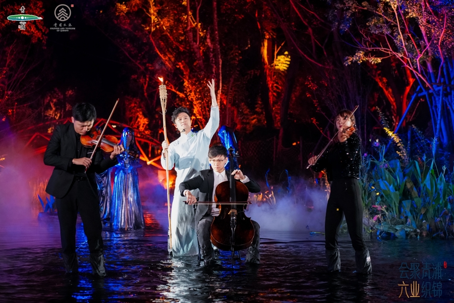 与此同时,沉浸式实景演出《从“田山歌”到“大地之歌”》精彩上演。演出由青浦城市推荐大使、昆曲艺术家张军领衔,联合青浦田山歌传承人与德国汉堡交响乐团,以“田山歌+昆曲+马勒交响乐”的跨界形式,构建“原生态-交响化-世界声”三级艺术呈现,实现非遗文化与西方古典乐的创新对话,为青浦“国际文化会客厅”建设及江南文化全球影响力提升注入文化动能。