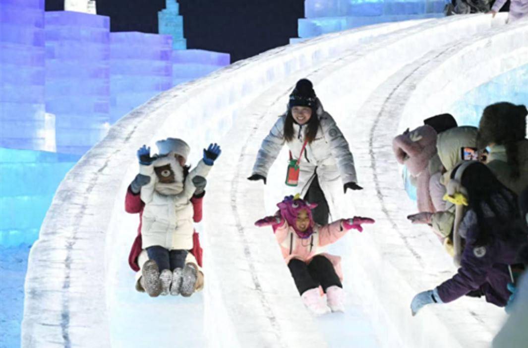游客在冰雪大世界游玩。哈尔滨人民政府官网图