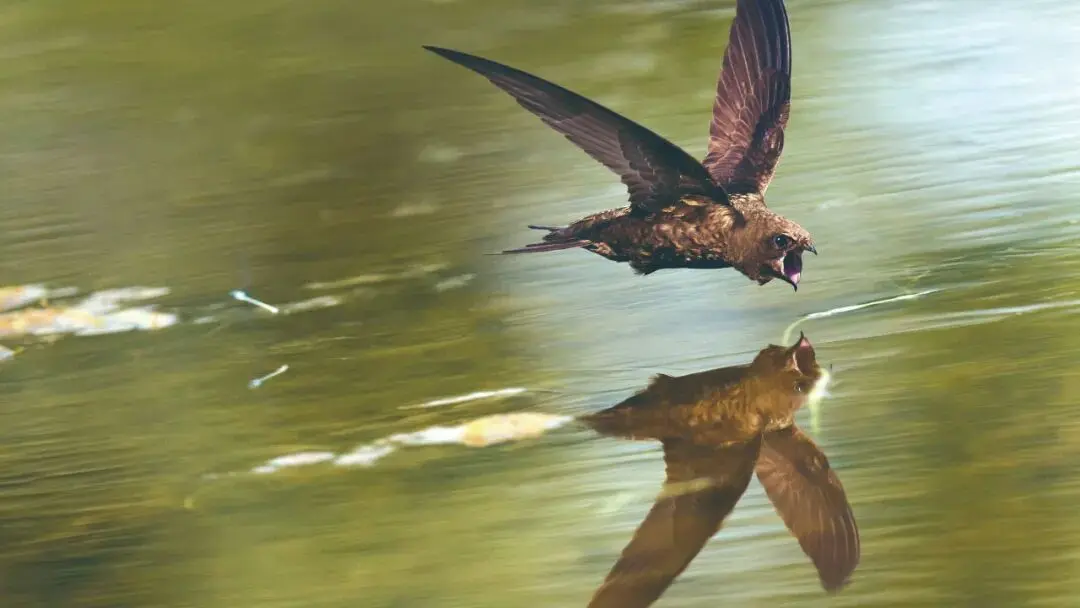 普通雨燕飞掠水面喝水