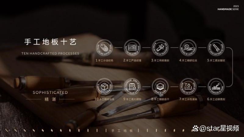 匠人们以十重手作技艺唤醒木之灵魂——从原木分色,严选纹理时指尖摩挲传递的温度,到传统推刨刀下细微力度变化的呼吸间隙;从拉丝工艺中复刻百年木纹的细妙分毫厘,到锯纹深浅里藏着的黄金触感公式。每一道手工镌刻的沟壑都浸染着植物染料的呼吸,在自然摊晾中沉淀出时光包浆。回溯系列产品以匠魂为本,磨砺自身,带来兼备美学张力、功能价值与生态责任的地板臻品。