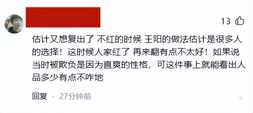 这些网友说当年王阳只是一名小演员,他想在圈内发展,也不敢得罪圈内有地位的人,这是无可奈何之举。